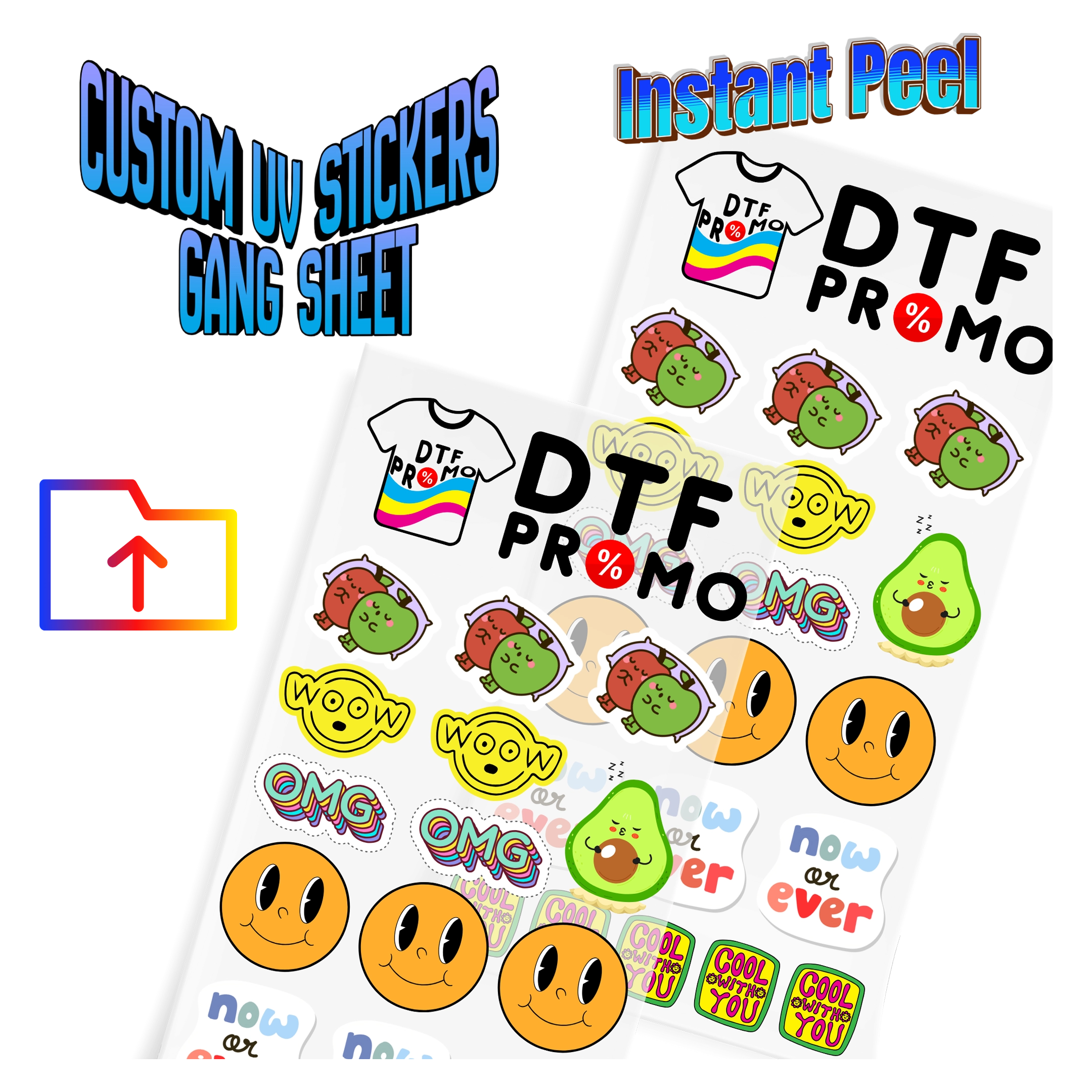 Every custom UV DTF gang sheet is printed using premium UV inks and cured for durability. The result is clean edges, bold colors, and stickers that apply smoothly to hard surfaces.